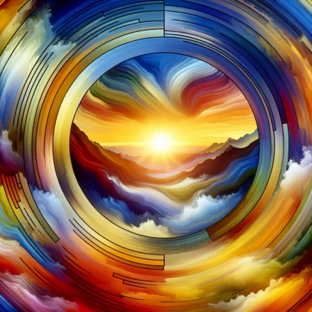 Create an abstract image exemplifying the energy and possibilities of a new day. Showcase bright colors and an uplifting atmosphere to represent a fresh, new start associated with the feel of the dawn. Text generated by gpt-3.5-turbo, image && image message generated by dall-e-3.